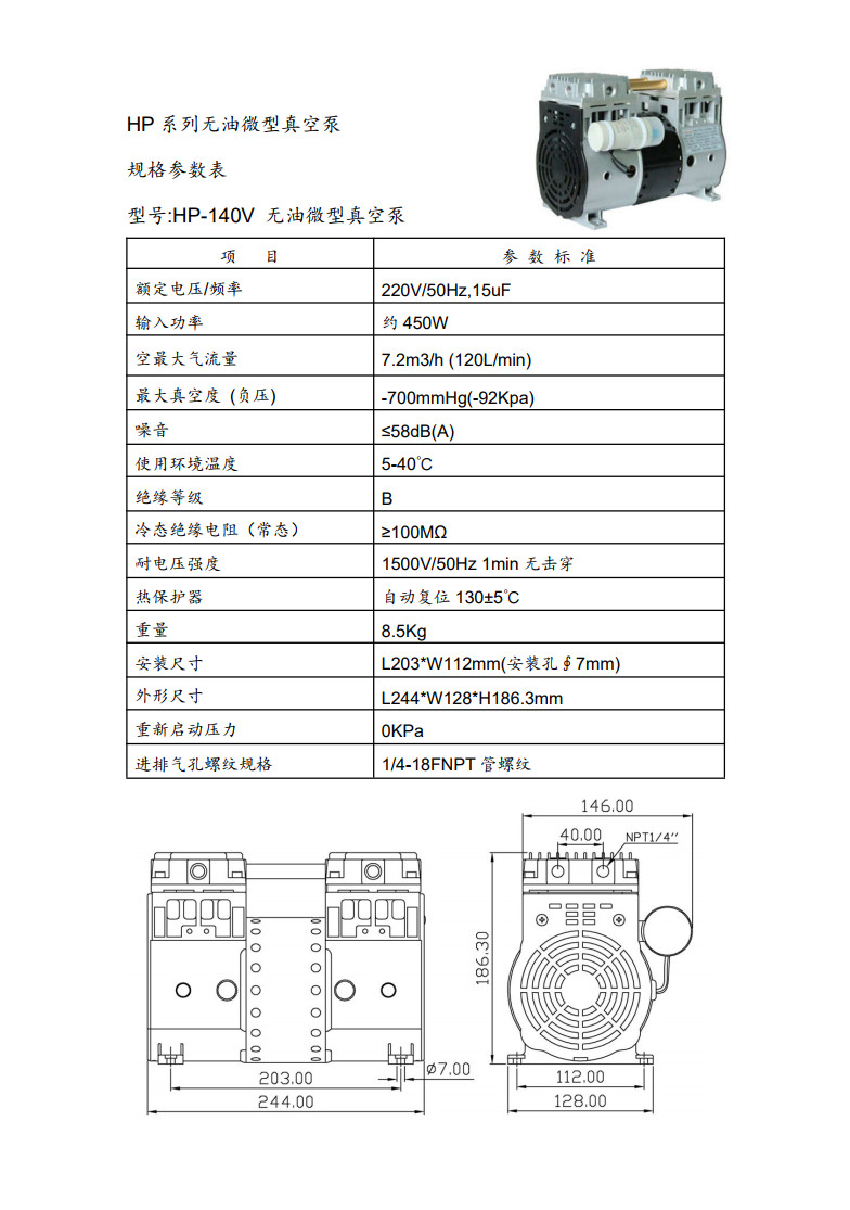 HP-140V 无油微型真空泵