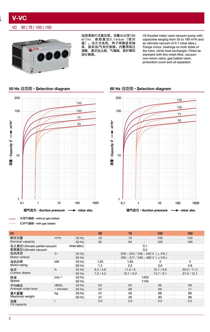VC50/75/100/150油润滑旋片式真空泵